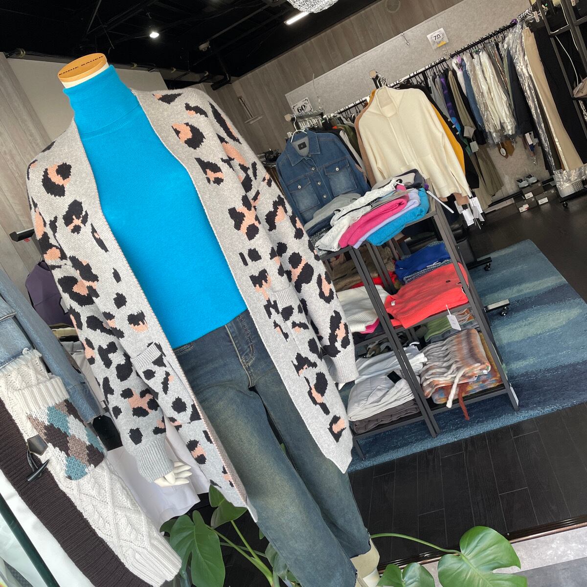 アニマル柄でおしゃれに着こなせ、サッと羽織れるニットカーディガンです。