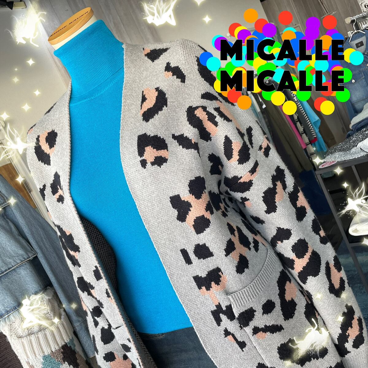 【MICALLE MICALLE】アニマル柄ロングニットカーディガン